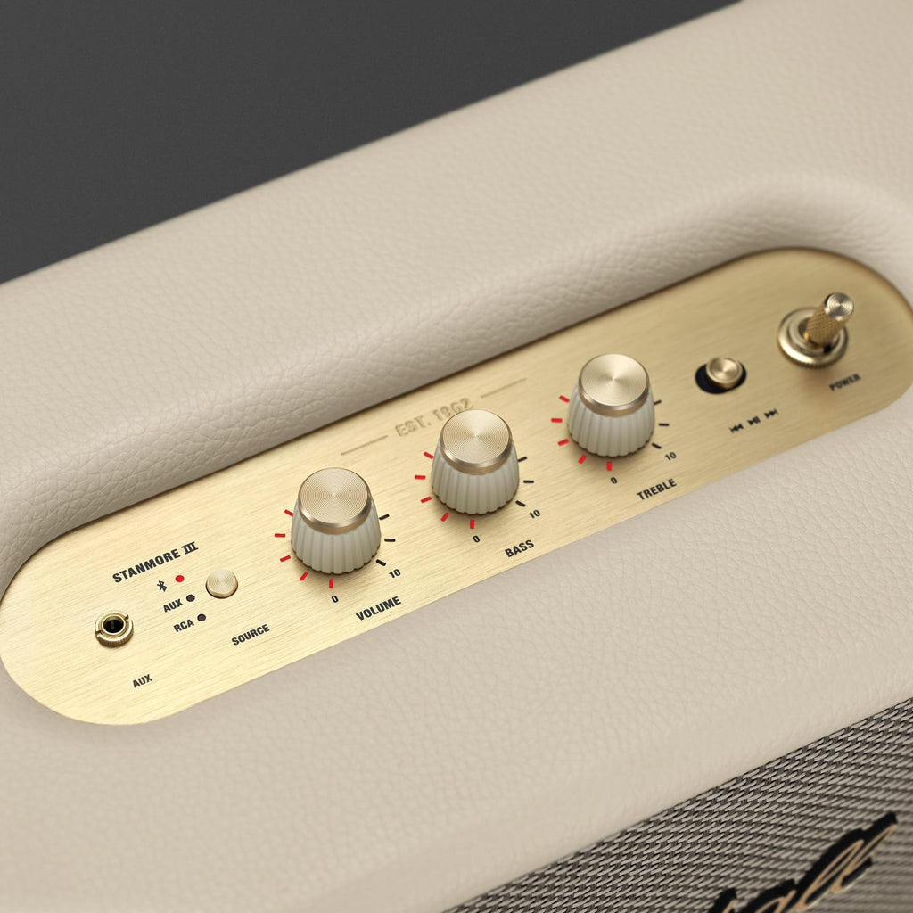 Stanmore III has an even wider soundstage than its predecessor, delivering home-filling Marshall signature sound, re-engineered for a more immersive experience. The two-way driver system delivers a heavy but balanced sound, with crisp, soaring treble and controlled bass that really roars. Easily connect to this speaker from your device using Bluetooth, RCA or 3.5 mm and get listening.