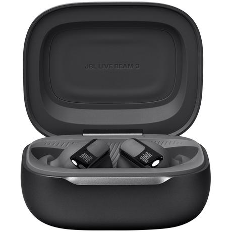 Get customized sound without ever looking at your phone. Use the controls on the Smart Charging Case™ of the JBL Live Beam 3 true wireless noise-cancelling earbuds with Hi-Res Audio to customize all their features without opening the JBL app on your device. Adjust volume and EQ, control your music, take phone calls, see messages—you can even customize the screensaver with your favorite photos. And that’s before you even get to enjoy the monumental JBL Signature Sound of the Live Beam 3 earbuds themselves. Best-in-class True Adaptive Noise Cancelling tunes out distractions. JBL Spatial Sound makes movies and music truly immersive. And if you have to take a call, 6 mics ensure perfect sound quality even in the noisiest surroundings. All this plus a 48-hour charge: 12 hours in the buds* and another 36 in the case—and they can charge wirelessly. The charging case features a loop to attach a lanyard for even more convenience. Great sound has never been simpler. (*with ANC off)